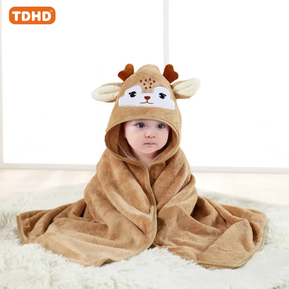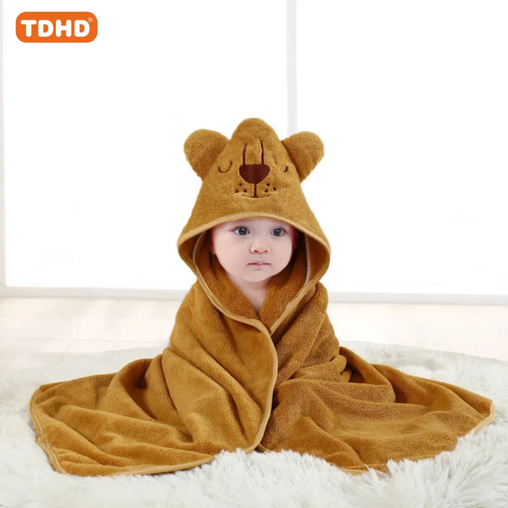 The cute animal-themed hood with embroidered details helps keep your baby’s head warm while making bath time more fun and photo-ready.