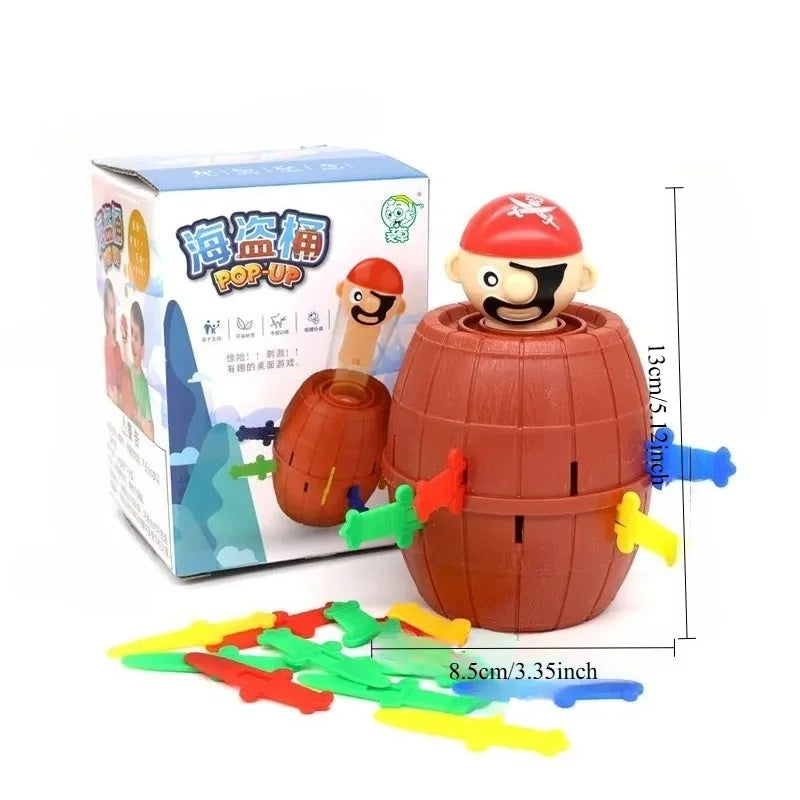 Bring laughter, suspense, and family fun to playtime with the Funny Pirate Barrel Game! This classic interactive toy is loved by kids and adults alike, featuring a playful pirate character that pops out unexpectedly when the wrong sword is chosen.